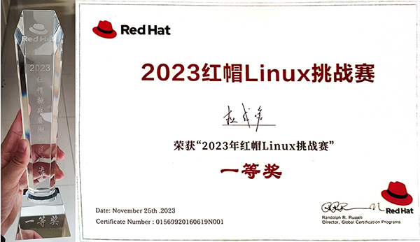 (通讯员 杜成帝)2023年11月25日,2023红帽Linux大赛湖北区域赛在武汉圆满落幕。此次比赛旨在激发大学生对Linux技术的兴趣,推动开源事业的发展,同时为广大Linux爱好者提供一个展现自我、提升价值的舞台。我院学子杜成帝、廖伏明、杨毅鑫在初赛中脱颖而出,顺利进入湖北区域决赛,并取得了优异成绩。
