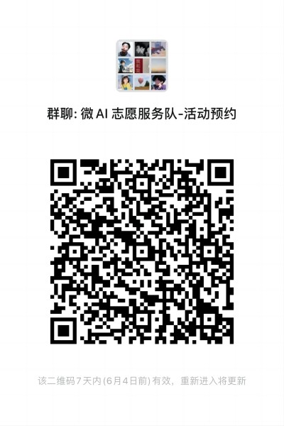 快快关注微AI志愿服务队预约群,每周四晚上六点到八点,我们不见不散哦~ (〃'▽'〃)