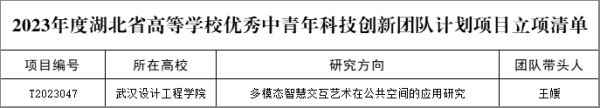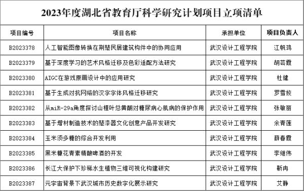 近日,湖北省教育厅发布了《省教育厅关于下达2023年度科研计划项目和高校优秀中青年科技创新团队的通知》(鄂教科函[2024]5号),我院获批科学研究计划项目4项,高校优秀中青年科技创新团队计划项目1项。