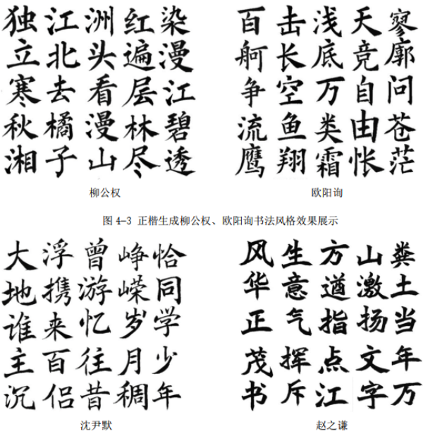罗雪姣老师主持的《基于生成对抗网络的汉字字体风格迁移研究》采用深度学习技术中生成对抗网络(GAN)模型来实现汉字字体风格迁移,保证语义内容不变的情况下,将汉字字体风格转换为目标风格。针对迁移模型中可能出现的模型崩溃、模型效率低,实现风格迁移后的字体生成错误,字体模糊,复杂字体笔画粘连等问题,在模型中加入迁移条件,使用ResNet、U-Net模型等对模型进行优化,使生成的字体在细节上有更出色的表现,提高生成图像的逼真度。