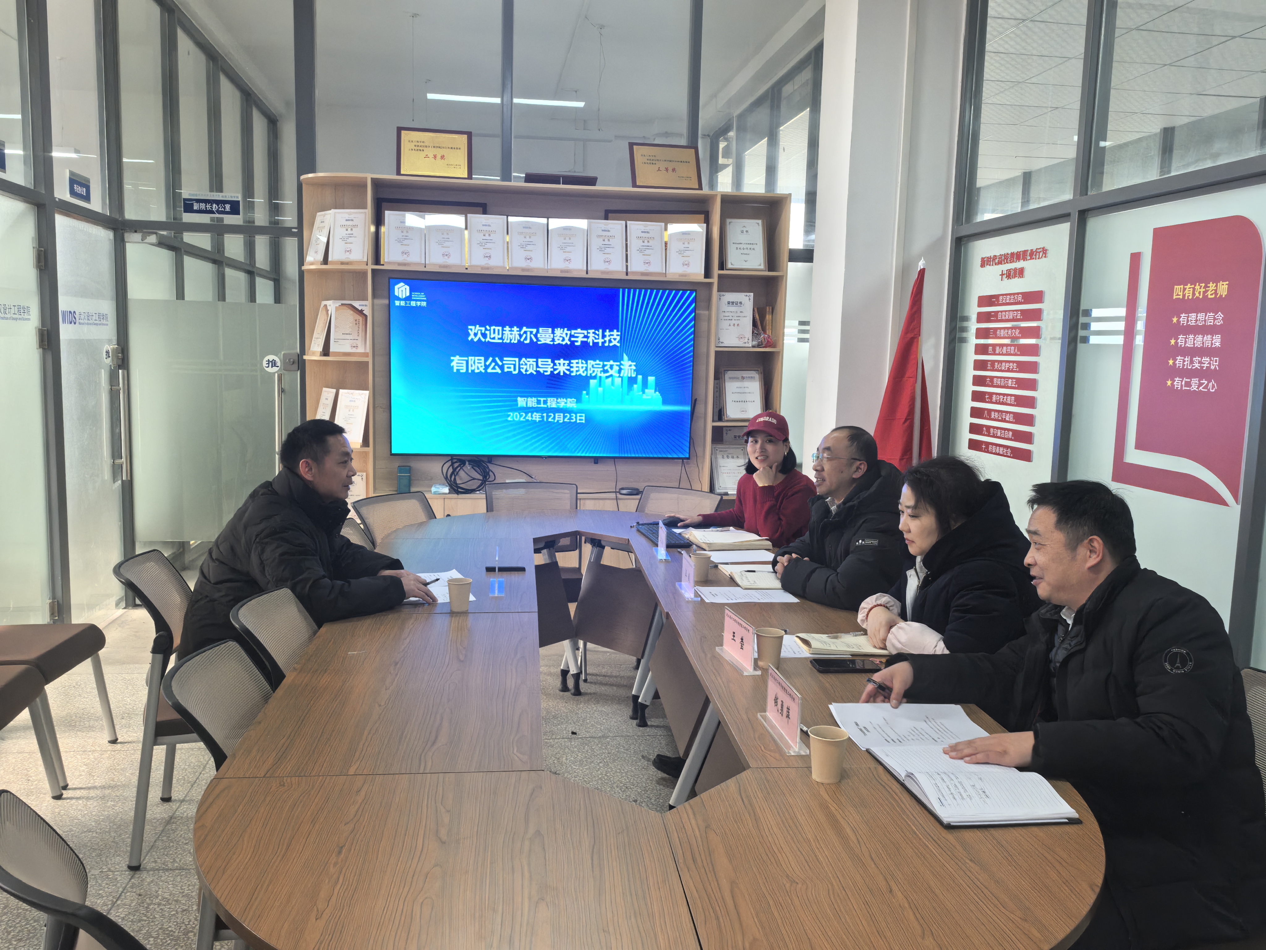 (通讯员:王卫玲)12月23日,赫尔曼(宜昌)数字科技有限公司董事长罗成文莅临我院沟通校企合作相关事宜,学院党总支书记王莹、院长汪毅、学科带头人钱勇萍、就业专员王卫玲参加交流会,会议由王卫玲主持。