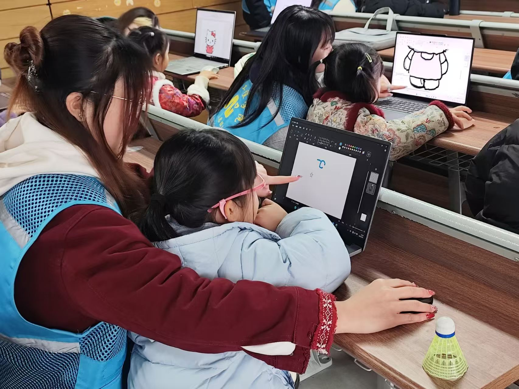 "奥特曼身边要冒闪电!""凯蒂猫要有鼻涕泡!"——在志愿者特制的电子画室里,小朋友们正用笔记本电脑绘制他们心中的跨次元偶像。从歪歪扭扭的线条到流畅的外框,从单一色块到渐变色魔法,一双双小手在触控板上舞出数字彩虹。当奥特曼与HelloKitty实现世纪同框时,萌娃们突然顿悟:原来Ctrl+Z不只是撤回键,更是勇闯艺术宇宙的任意门!