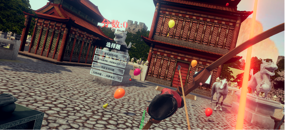 文化传承需要契合时代脉搏。数字媒体技术专业陈诺作品《忆古》VR游戏以“君子六艺”为蓝本,运用VR技术构建出沉浸式古代场景,通过礼仪演示、乐器弹奏、模拟射箭等六项交互设计,让玩家在虚拟体验中感受传统文化的魅力。设计者利用建模软件精准复刻古建筑,配合古风视频与字帖对照,让传统君子六艺“活”在数字时代。