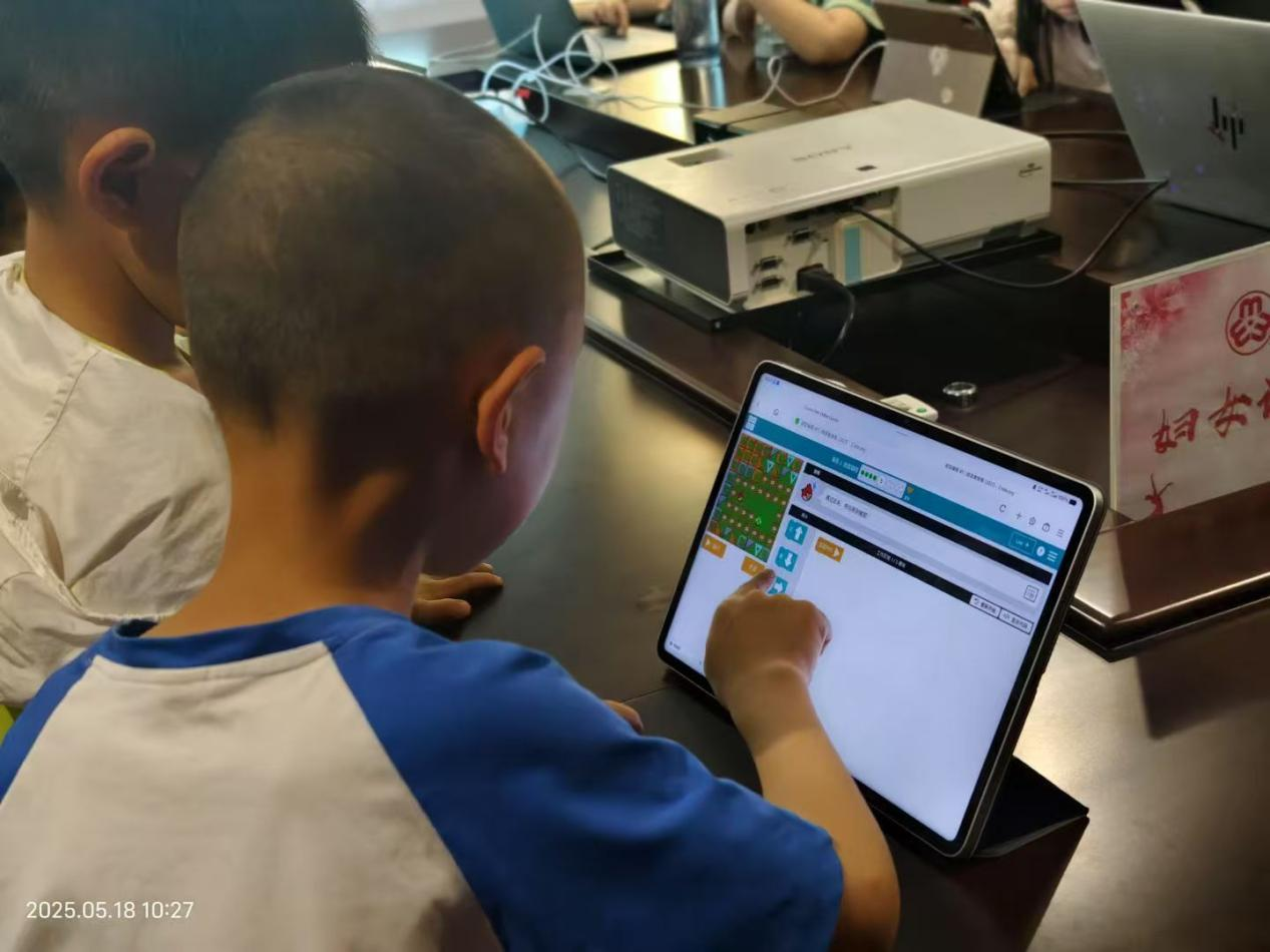 "当个啷当!"闯关界面绽放出烟花,会议室里爆发出阵阵欢呼。5月18日的AI芯小课堂,丁家山会议室的电脑屏幕前正上演着脑力风暴——孩子们用代码积木指挥愤怒的小鸟攻击野猪,在游戏世界里开启编程启蒙的奇幻旅程。