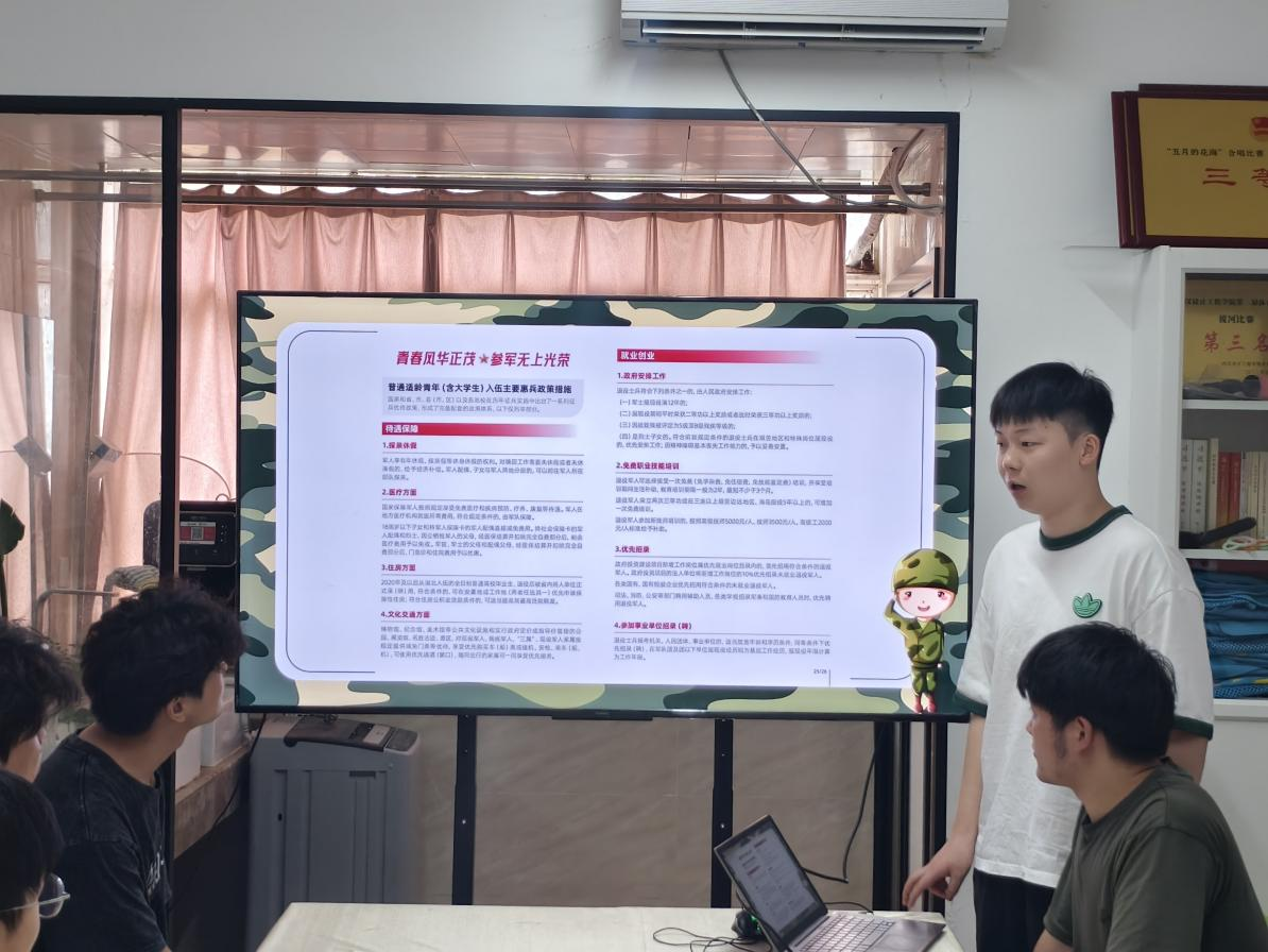 宣讲会上,两位同学从多个维度展开分享。在政策解读方面,他们会详细剖析2025年秋季征兵的最新政策,包括入伍政策、退役升学、就业保障等,让同学们清晰了解投身军旅能够获得的成长机会与发展空间;对于征兵要求和流程,他们逐一讲解报名条件、体检标准、政治考核等关键环节,帮助同学们提前做好准备,顺利迈出军旅生涯第一步;在兵种介绍环节,两位分享人将结合自身服役经历,生动讲述不同兵种的特点与使命,让同学们对各兵种有更直观的认识;此外,他们还会分享部队生活的点点滴滴,从日常训练、团队协作到军营文化,全方位展现军旅生活的热血与温情,让同学们感受军人的责任与担当,点燃心中的参军热情。