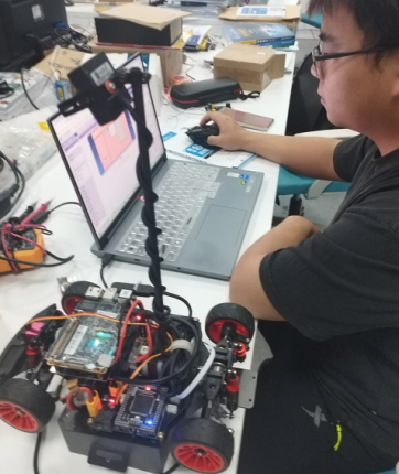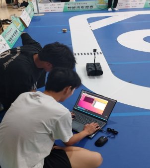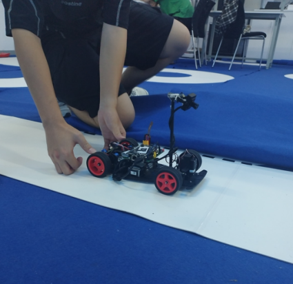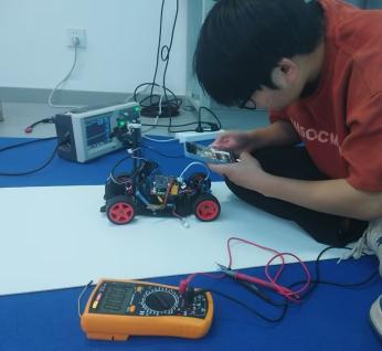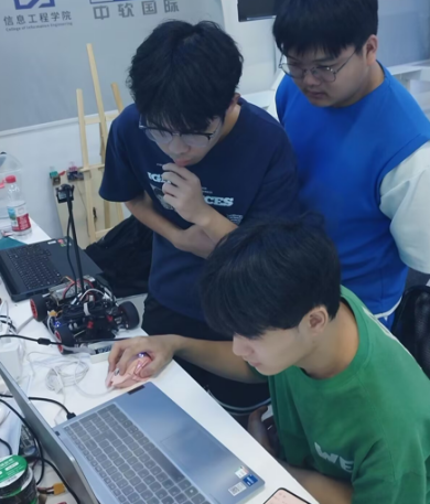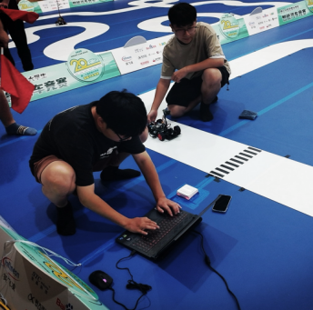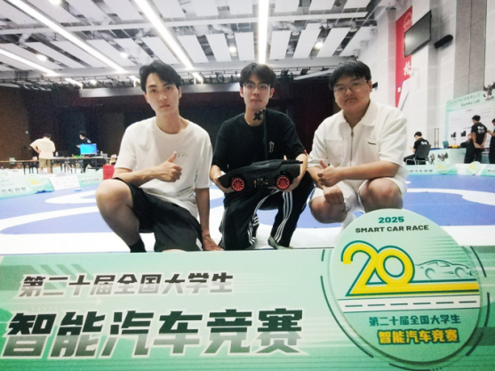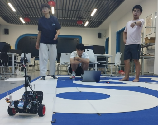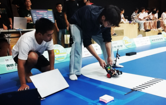 在比赛现场,同学们凭借备赛期间练就的调车经验,细心观察赛道特点,临场研讨技术策略,稳定心态紧密配合,在竞赛规则限定时间内,完成车辆场地适应性调试和三次正式发车,不断测试和刷新智能车跑圈成绩,以稳定的表现顺利完赛。