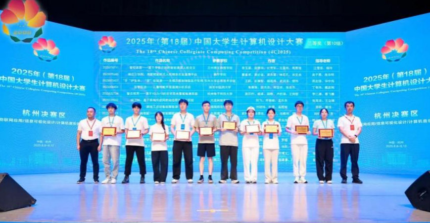 近日,2025年(第18届)中国大学生计算机设计大赛全国总决赛圆满落幕,其中“人工智能应用”决赛在吉林长春东北师范大学举行,“物联网应用”决赛在杭州浙江师范大学举行。在这场全国高校计算机领域的顶尖赛事中,我院学子凭借出色的创新能力和扎实的专业技能,从众多参赛队伍中脱颖而出,斩获两项全国三等奖,充分展现了我院在计算机科学技术领域的育人成果。