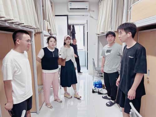 9月11日,我院党总支书记王莹、院长汪毅等一行专程前往红安校区,深入了解新生报到注册情况。期间,院校领导亲切走访了新生宿舍,先后视察了男生寝室与女生寝室,与新生们进行了亲切交流,细致询问了同学们初入大学的适应情况、生活需求及入学感受,并勉励大家要尽快转变角色,融入大学集体生活,珍惜时光,潜心向学。