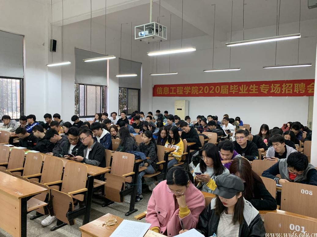 [通讯员 黄俊杰]为了更好的解决我院学生的就业问题,缓解学生毕业压力,我院于2019年10月29日下午,在临湖轩A1029教室顺利举办了第一场“信息工程学院2020届毕业生专场招聘会”。