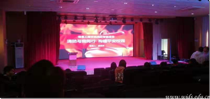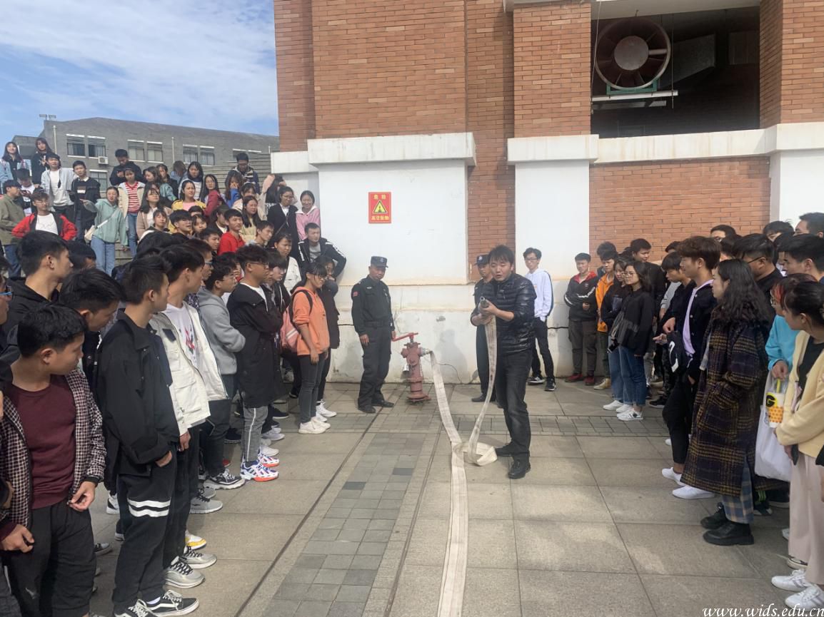 为了切实做好学院安全稳定工作,深入推进“和谐校园,平安校园”建设,确保师生生命财产安全,维护校园和谐稳定。2019年11月14日中午,信息工程学院举办了消防知识讲座和消防演练指导。此次消防讲座在咏归小礼堂举行,由辅导员黄俊杰老师主讲;消防演练在我校图书馆广场举行,后勤保障处消防秩序科杨帆老师向师生们讲演的灭火器及消防栓的具体操作方法。此次活动,我院200余名师生积极参与,效果良好。