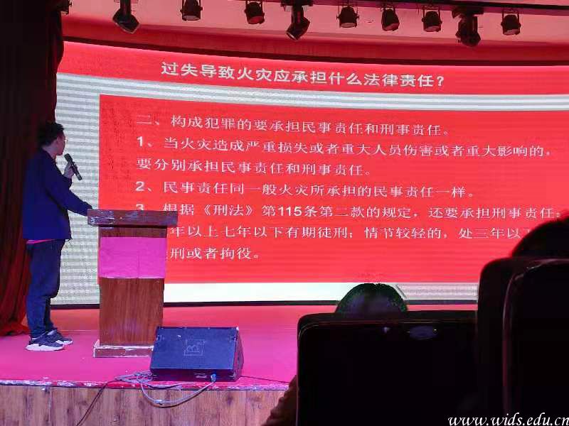 在消防知识讲座上,辅导员黄俊杰老师为大家讲解了基本消防安全制度,并简要介绍相关法律法规,旨在使大家形成基本消防观念。同时结合实际案例、图片、视频、以及消防安全制度,深入浅出的将生活中造成火灾的原因、校园安全用电常识及电气火灾预防、常见火灾及处理方法、遇到火灾时的逃生自救方法等消防知识,以通俗易懂的语言作了详细的讲解和剖析,对如何树立消防意识,预防、杜绝可能引起消防事故的内外隐患等方面进行全面的讲解。