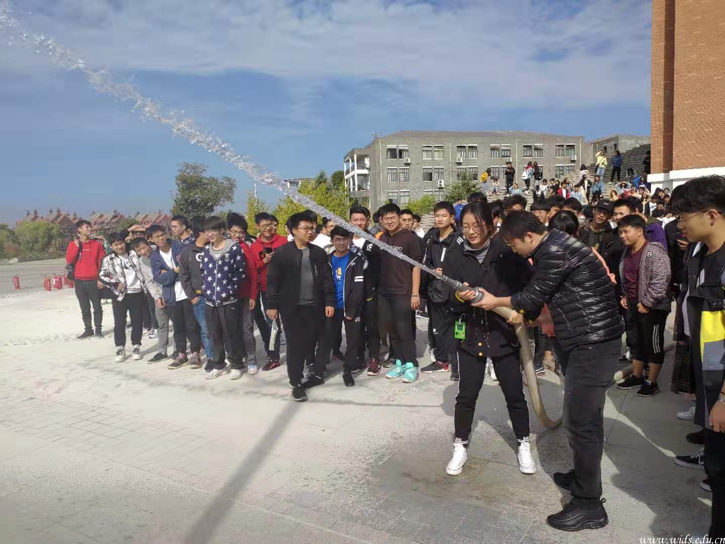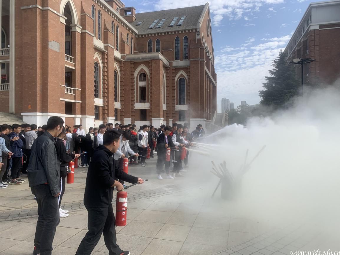会后,师生们前往图书馆广场前学习了杨帆老师演示的灭火器及消防栓的操作方法,部分同学亲身体验了灭火器和消防栓的使用,使燃烧的火堆迅速熄灭,赢得了同学们的掌声。