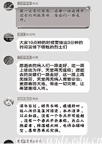 对此,我院学子也自发组织在各个班群里开展了“深切悼念新冠肺炎疫情牺牲烈士和逝世同胞”为主题的主题班会,部分学子也发出了来自内心深处的感悟: