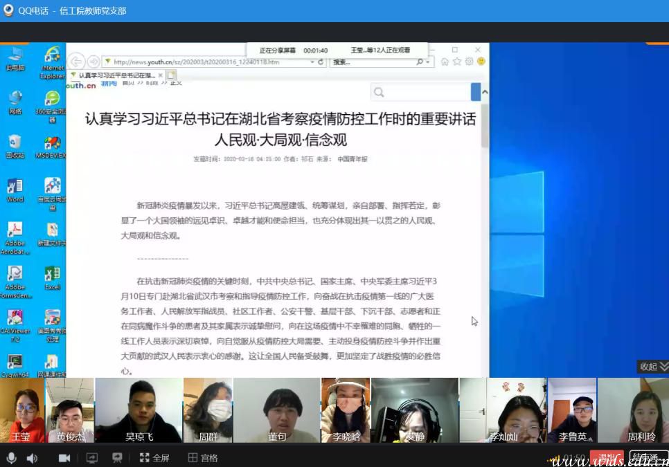 武汉疫情已持续两月有余,为了更好地抗击疫情,打赢疫情防控阻击战,信息工程学院党总支教师党支部在3月26日通过网络视频会议专门召开了一次主题党日活动。