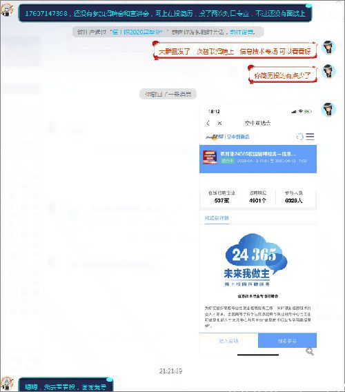 疫情期间,信息工程学院联系学院企业库专业对口企业,询问企业招聘需求情况,并向企业讲解疫情期间我校招聘会开展现状,积极邀请企业参加我校网络招聘会。同时学院联系已就业学生,询问其就业单位相关情况,特别是招聘需求情况,进而提供岗位需求。另一方面,学院联系专业教师,依托专业教师的人脉资源,寻求需要招聘的对口企业参加我校招聘会。此外,学院积极联系我校其他学院的就业联系人,询问是否有与本学院专业相关的招聘单位,进一步扩大就业机会。