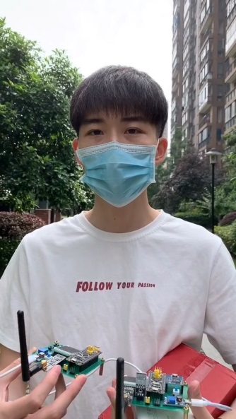 图2 黄浩霖同学使用自编手机APP控制小车轨迹现场答辩图