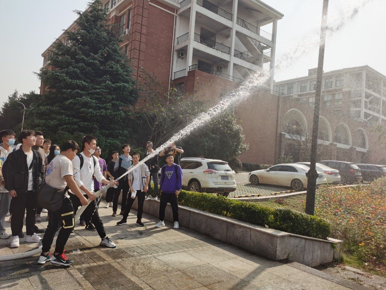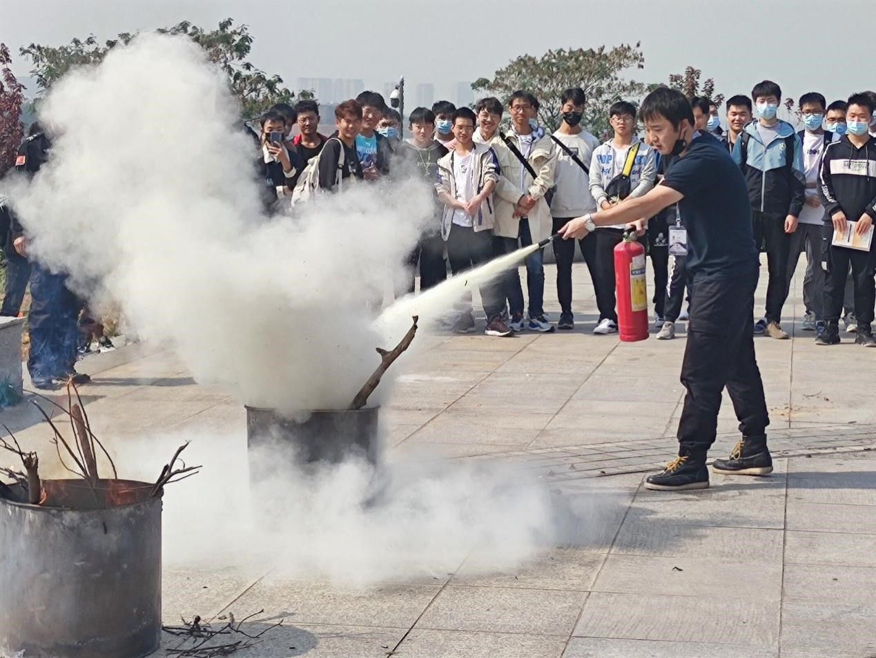 知识讲座结束后,师生们移步空旷地带,由我校消防科杨帆老师演示灭火器与消防栓的正确使用方法,杨帆老师用其独特的幽默风趣,重点介绍了火灾发生时各类人群的应急反应,在场师生们皆忍俊不禁。并带领学生们亲身使用消防器材,一幅幅消防画面就此陆续展开…