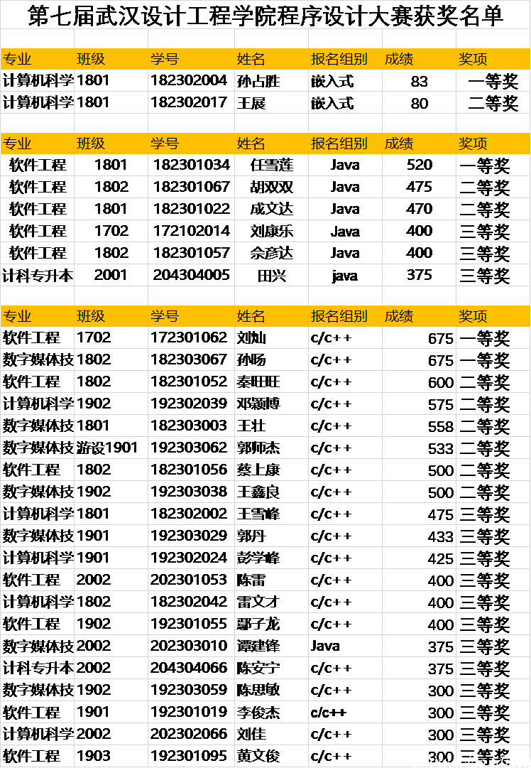 恭喜以上同学,本次程序设计大赛采取“洛谷”平台在线系统,公平公正,如有问题,请联系刘艳梅老师,电话:027-81730624。