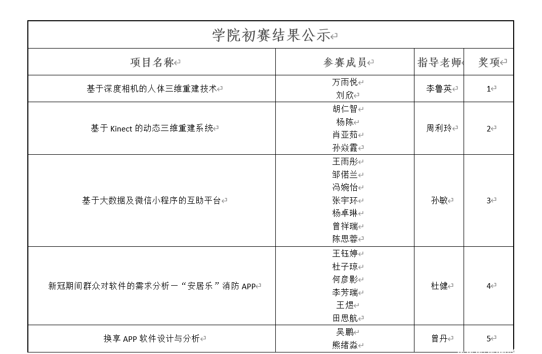 yl6809永利YL集团“挑战杯”大学生课外学术科技竞赛信息工程学院参赛作品共收到通过资格审核的申报作品6件,经过3月8日初赛的比拼,6件作品皆进入决赛,其中《基于深度相机的人体三维重建技术》获得此次初赛第一名,其余作品名次也已评出。