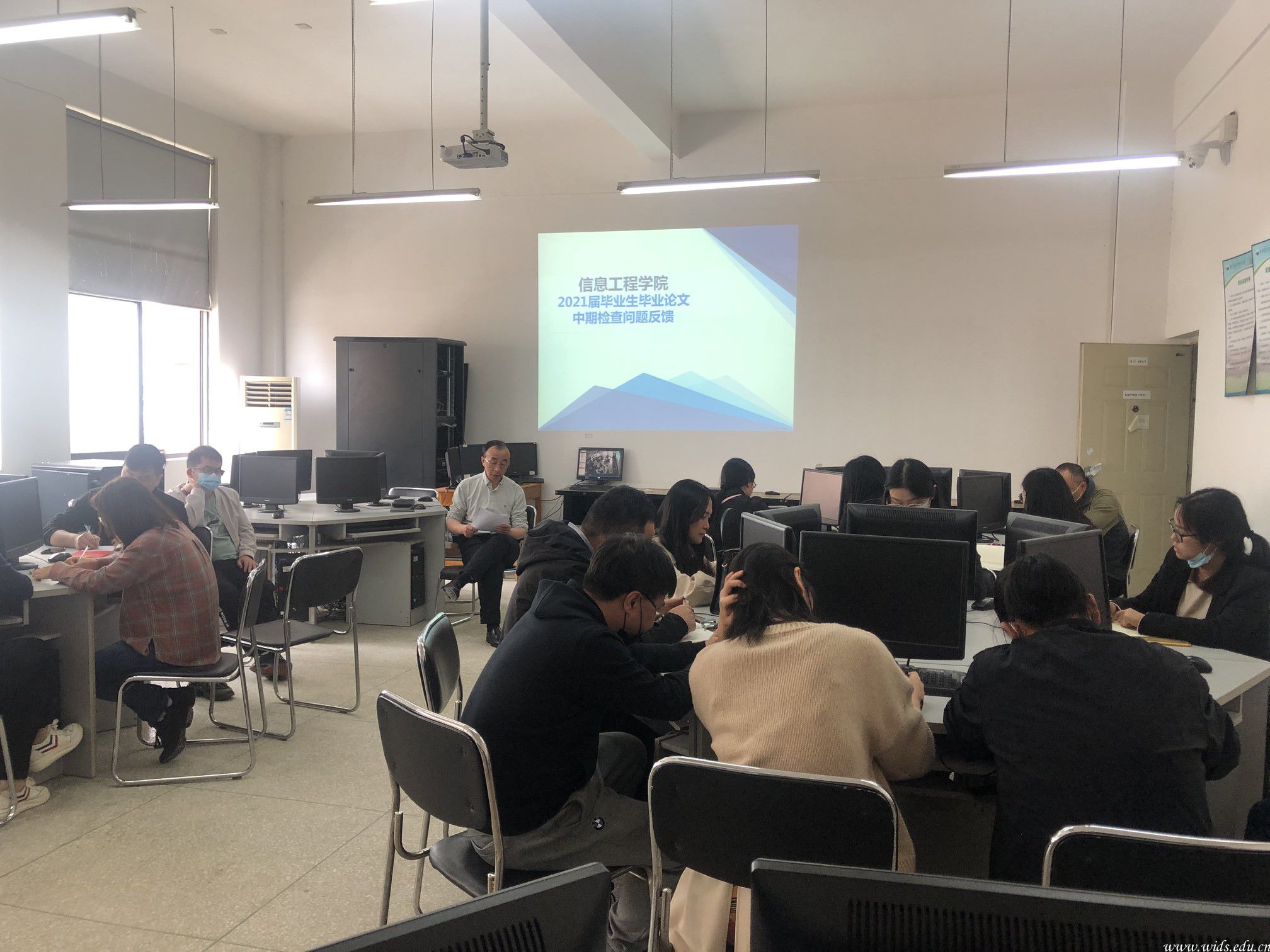 (通讯员 刘艳梅)为保证学院各专业切实加强对毕业论文工作的组织安排,要真正做到早研究、早准备、早布置。针对学校教务处组织专家来我院检查毕业论文进展情况和教学管理情况的反馈意见,4月23日下午,信息工程学院全体教师在临湖轩4069集中开展2021届毕业论文中期检查反馈专题会。