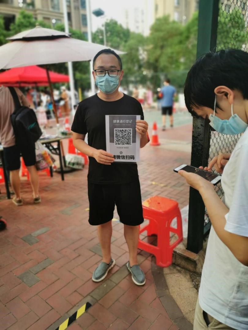 李鲁英同志在社区主要负责核酸检测排队的秩序维护,以及指导参与检测人员的出示绿码等工作。李鲁英同志所在的社区居民较多,检测工作从白天持续到晚上11点才结束。他介绍:白天检测以老年人为主,许多老年人因没有健康码,就需要一个一个的帮他们注册。下午6点之后,下班的居民开始进行检测,大家都很急,维护秩序至关重要,避免聚集和交叉感染,保持一米间距,他一遍一遍的提醒,嗓子都冒烟了,中间没有停歇过。作为一名共产党员,走在防疫前列是他的职责也是他的骄傲!