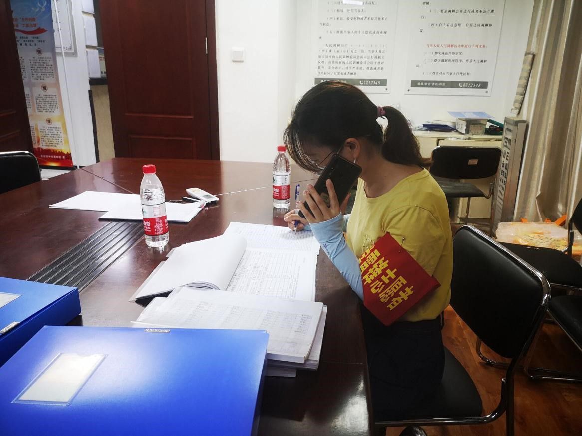 李灿灿同志在电话排查社区居民情况。
